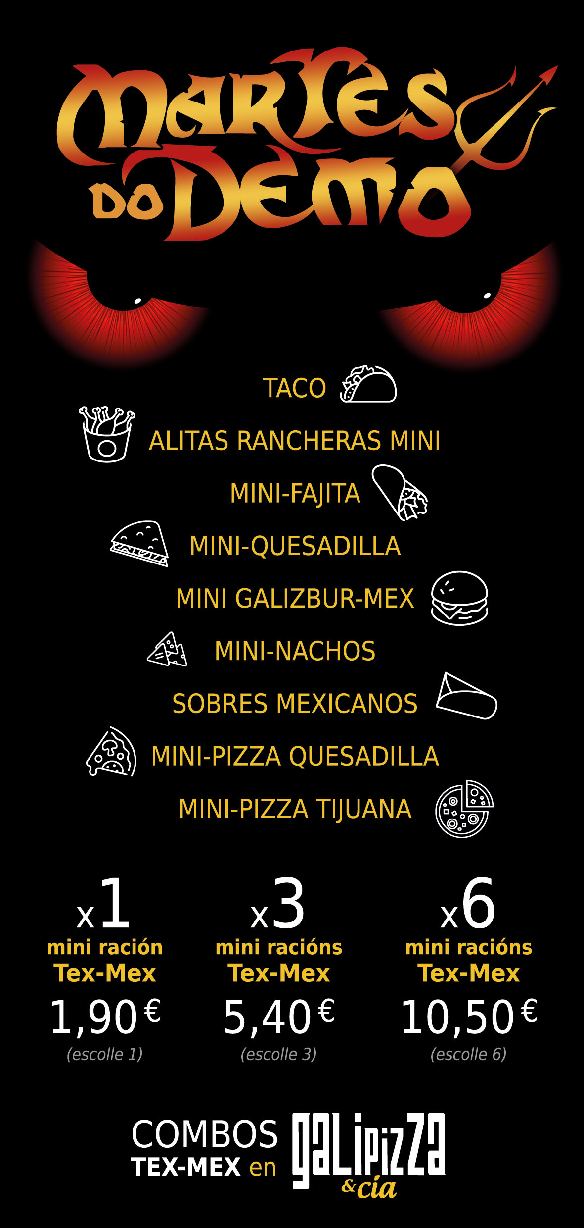 Xa chega outro #XovesdeTapeo… en #Galipizza #Covas #Viveiro #Ribadeo #Culleredo #Santiago #Compostela #Vigo Por tan só 2,00€ podes probar as novas creacións desta semana… e xa sabes que o noso tapeo é durante todo o día, non só pola noite, así que xa podes xantar hoxe de tapeo… Galipizzeamos? Galipizza…